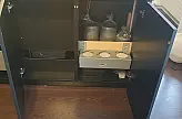 Glas Paneelwand Farbe weiß,mit Ablagen und Halterungen.