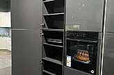 Zum Verkauf steht eine exklusive Nolte Küche in modernem Design mit hochwertigen Elektrogeräten von Neff und Falmec. Die Küche überzeugt durch eine elegante Kombination aus Graphit Hochglanz (lackiert) und Echtholz Esche, sowie einer robusten Graphit-Arbeitsplatte.